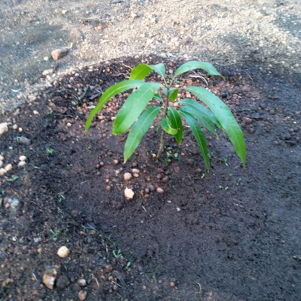 Mango grown from seed. New experiment to see if it can survive a frost planted against a sea container to keep warm. Next image