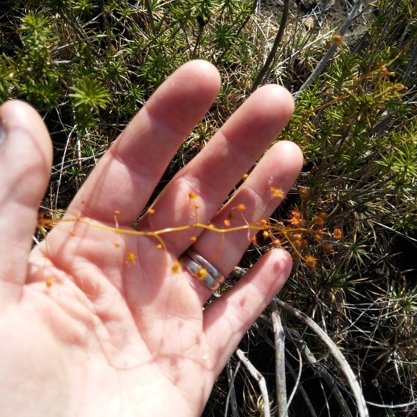 The flowers from a sundew… Nicknamed rainbow. It is sticky and as kids we would wrap it into crowns to wear. Previous image Next image