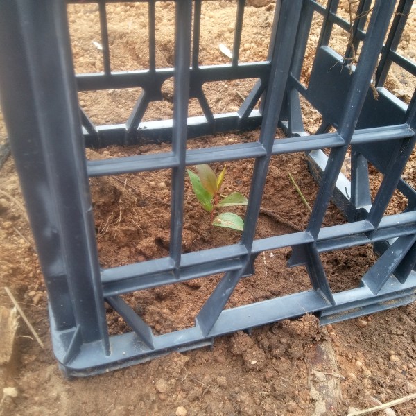 A very very lazy kangaroo proofing method. Milk crate with a heavy rock on top.