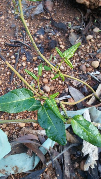 Native wisteria (Hardenbergia sp) has come back after being eaten by roos.